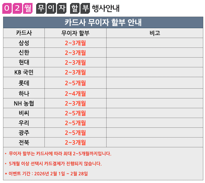 [2월이벤트]2월 무이자 행사 안내
